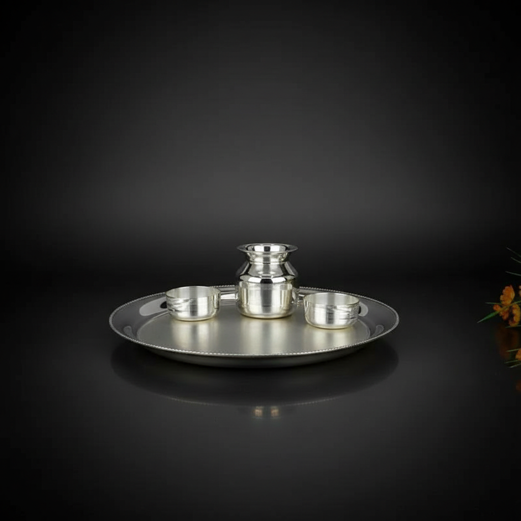 Antique Ghungroo Silver Pooja Thali Set of 4