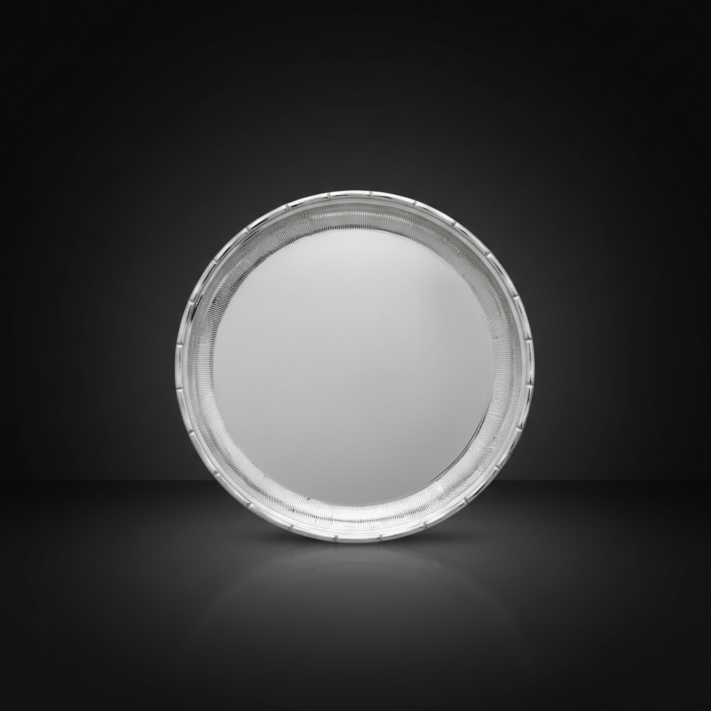 Introduce refined charm to your dining experience with this beautifully crafted Bamboo Border Textured Silver Plate. Designed with a subtle bamboo-inspired pattern around the rim, this plate blends simplicity with elegance. The textured surface enhances its visual appeal while giving it a sophisticated, handcrafted feel.