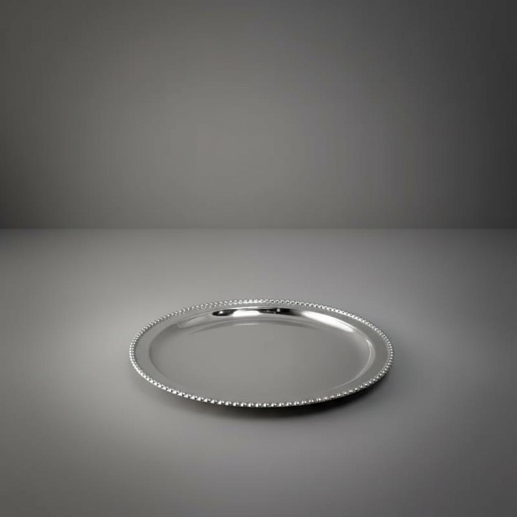 True elegance lies in simplicity—an idea perfectly reflected in this Beaded Rim Pure Silver Plate. Featuring delicate bead-like detailing along the edges, the plate’s radiant silver surface creates a beautiful contrast that highlights its refined craftsmanship.