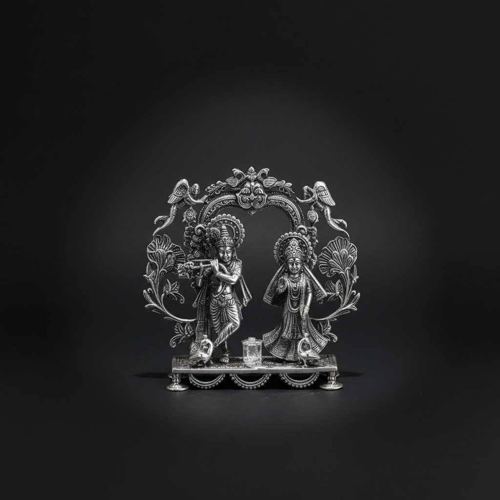 Celebrate divinity and devotion with our exquisitely carved Radha Krishna Silver Murti, thoughtfully designed to elevate your spiritual ambience. Featuring detailed hand engravings, this masterpiece reflects purity, love, and timeless artistry.
